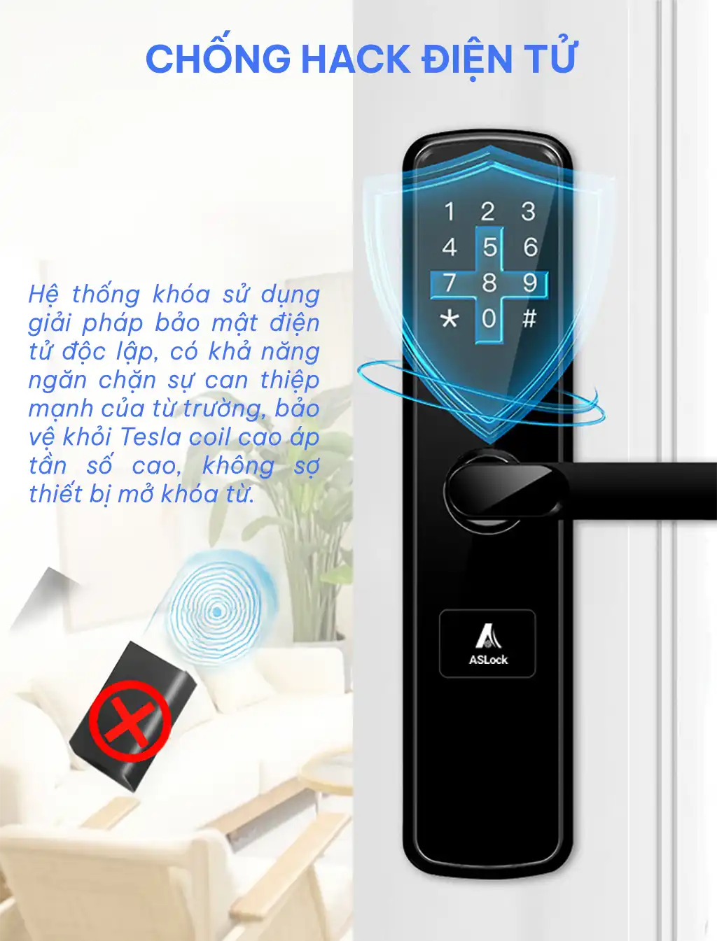 Chống hack điện tử: Khóa sử dụng giải pháp bảo vệ điện tử độc lập, chống thiết bị mở khóa từ xa (Tesla coil, hộp đen) – điều mà nhiều loại khóa thông thường không có.